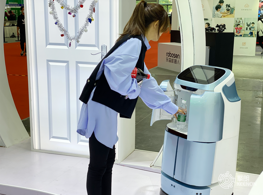 此外,擎朗智能新品酒店机器人智能解决方案引来现场观众围观并纷纷驻足咨询。相较于其他配送机器人,W3是一款人性化设计的机器“人”,眼睛、嘴巴、脖子、腰部等,清晰可见。圆润、贴心、友善的情感化设计,造型方面以弧形或平面无棱角的曲线为核心,尽量避免突出棱角,让人机交互更有温度。支持通过“机器人+货柜”,构建智能酒店生态系统。