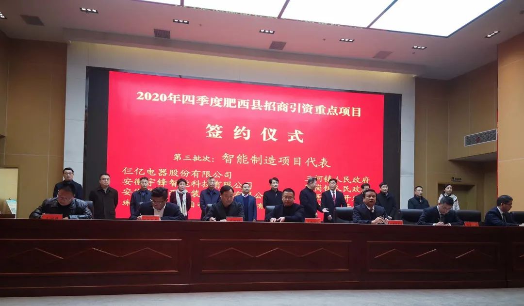 12月22日上午,安徽宇锋工业物流机器人项目在中部花木城报告厅举行签约仪式。安徽省经济和信息化厅副厅长柯文斌,市政府副市长路军,县委书记金成俊,县委副书记、县长李煜等领导出席仪式。签约仪式由县委副书记、县长李煜主持,副县长程潭在仪式上介绍了本次招商引资签约项目情况,安徽宇锋董事长项卫锋,总经理季彩玲,副总经理王海防等领导及企业代表出席签约仪式。
