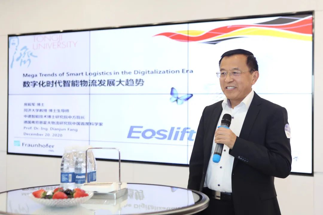 房殿军教授进行了《数字化时代智能物流发展大趋势》主题的演讲,结合中国与德国的一些案例,向大家分享了智能物流技术的发展以及他对未来趋势的见解。