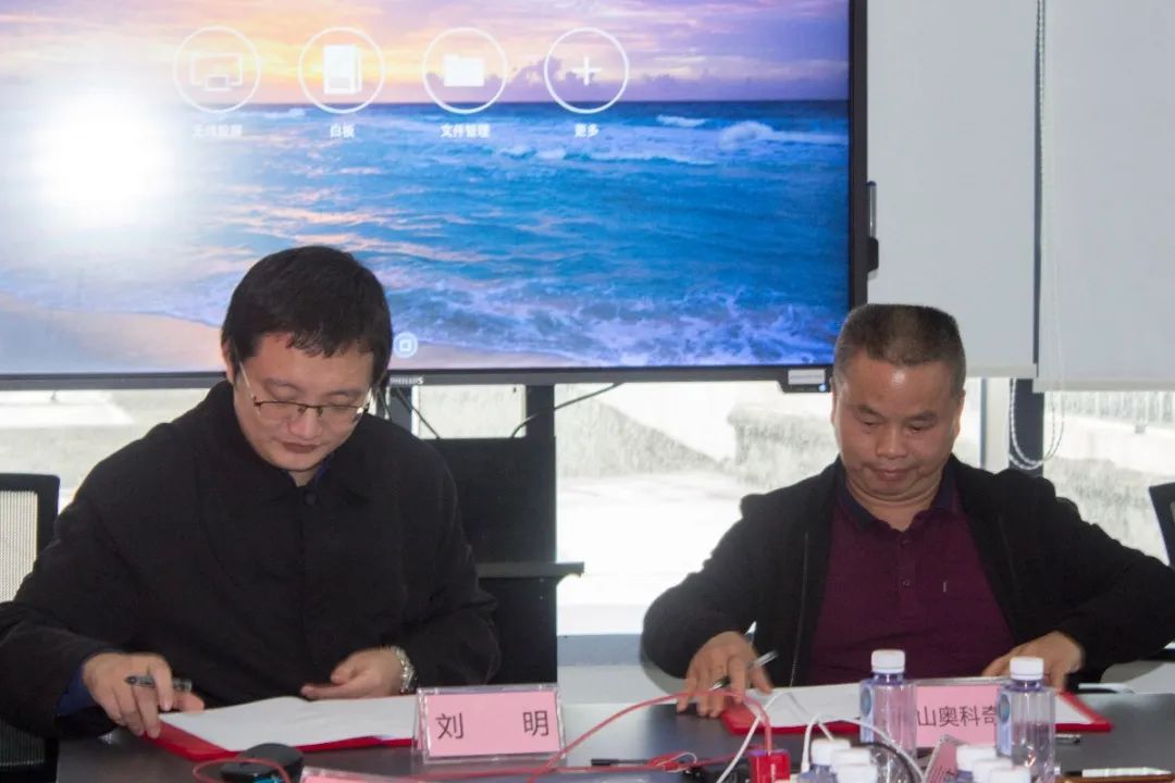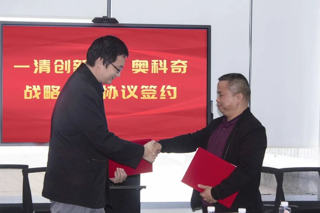 一清创新创始人刘明(左)与奥科奇董事长罗柱流(右)签署战略合作协议