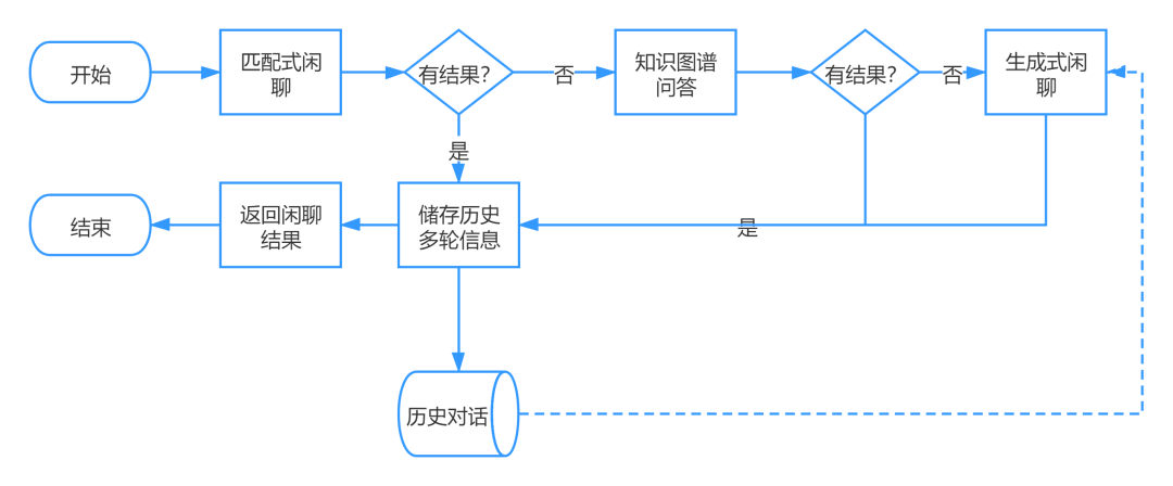 闲聊分为匹配式闲聊与生成式闲聊。匹配式闲聊具有Q&A库,Q&A库如果足够大,能达到较好的闲聊效果;生成式闲聊不需要匹配,将根据问题生成答案。