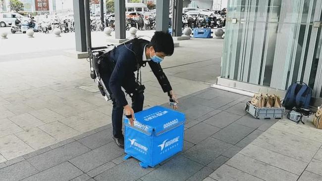 上海近铁城市广场一名身着外骨骼机甲装备的外卖小哥,成了广大网友关注的焦点。