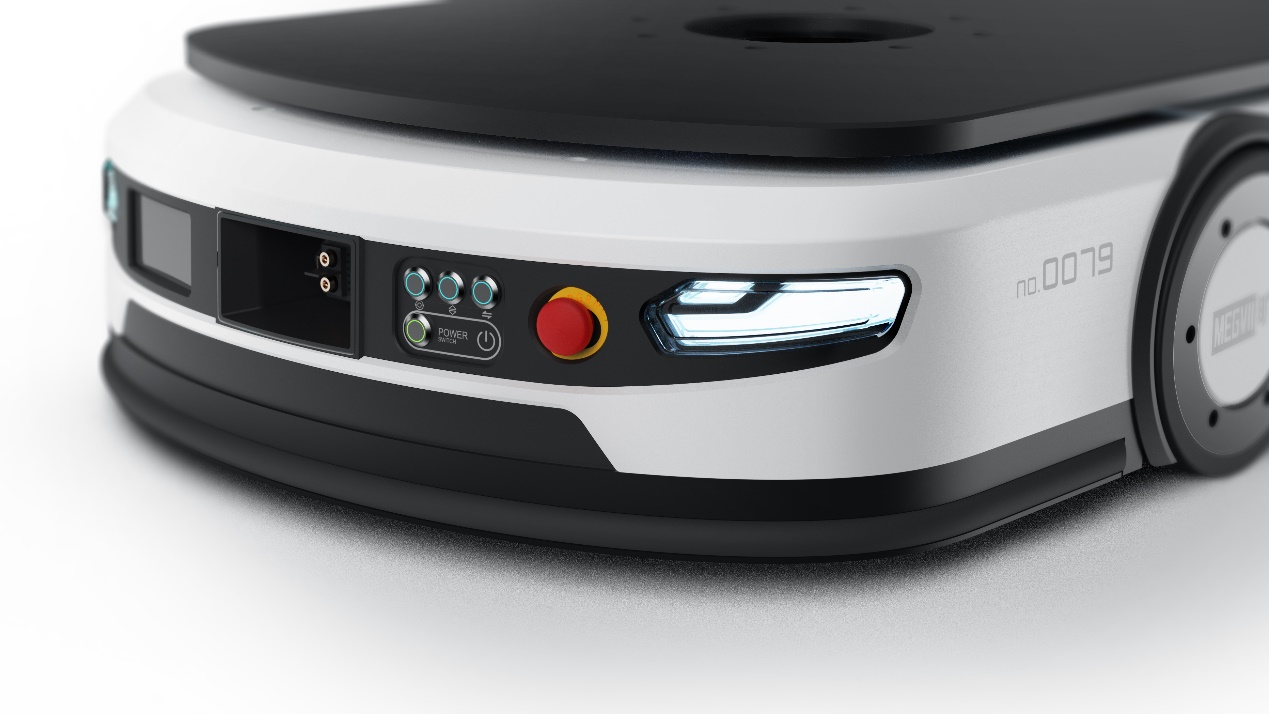 不同于普通AGV机器人方正呆板的外观 ,T800创新性的在AGV机器人上实用了汽车车灯的工艺方式打造了极具科技感的鹰眼车灯.整体外观张弛有度简洁而富有韵律感。除车灯外仅前后两件的注塑壳体结构极大的降低了机器人的生产成本。