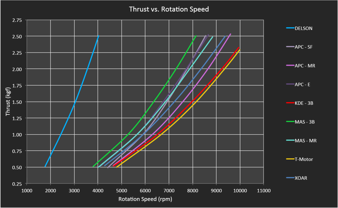 Deloyer回答道:目前,叶片的运行效率降低了4-8%。这款无人机专门测试了使用标准(APC MR系列)18寸叶片达到了41分钟悬停,使用Delson 18寸叶片达到了38.5分钟悬停,唯一的变量是使用的叶片。