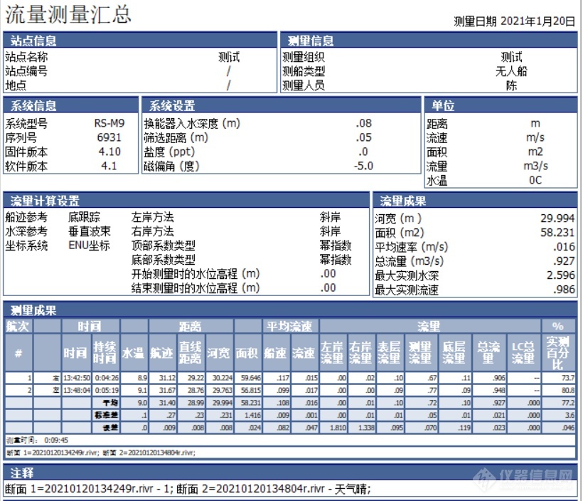 M9无人船测流系统为用户提供后处理系统,自动备注误差大于5%的数据,并最终生成专业的测流报告。