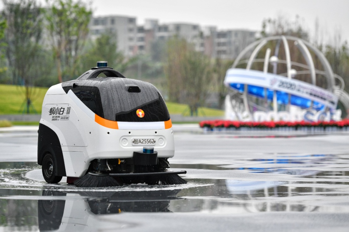 记者了解到,该无人驾驶清扫车由重庆智行者信息科技有限公司自主研发生产,目前投放4台在礼嘉智慧公园,进行自动化清扫,减轻了劳作者繁重的卫生维护工作。据统计,仅2020年11月,4台“蜗小白”就累积清扫411个小时,平均每台车每天运行3.4小时。加上萌趣的外表,“蜗小白”颇受游客好评,成为了园区内的“小明星”。