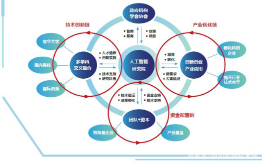 研究院通过整合学校及社会多方人、财、物资源,形成技术创新、产业优化及资金配置三链相扣的政产学研商协同创新机制,打造东华大学人工智能科研创新与成果孵化一体化平台,构建科创与金融融合的科研新环境。