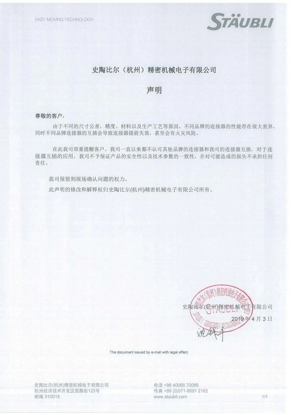 一些厂商声称其产品可以与史陶比尔16BV互插。事实上,不同厂商连接器互插,无法保证产品的安全性以及技术参数的一致性,会导致连接器提前失效以及认证失效,产生技术、法律和经济风险。此外,业主还会面临设备损坏、人员伤害,甚至火灾风险。因此,史陶比尔禁止其他厂商连接器和16BV互插。