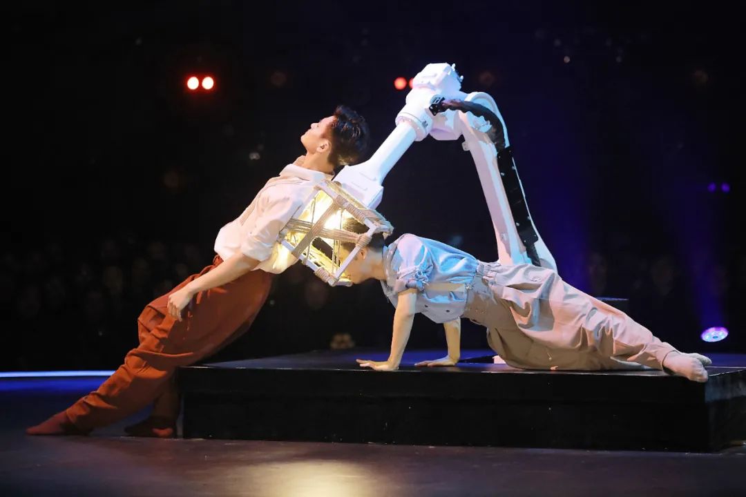 《距离》背后,一同演出的还有来自江苏哈工智能机器人股份有限公司旗下子公司哈工现代型号HH020机器人。它与两位舞者一起,携手为大众带来一支与科技共舞的绝美作品,用舞蹈呼吁大众能够放下手机,更为重视身边人。舞者们用最动情的演绎与最走心诉说,为社会留下了最温暖的关照,舞蹈之中既饱含理性之光,又透露着感性的美好。此次演出,是哈工现代在工业领域外的首次尝试,将机器人、人工智能和舞蹈结合,实现了科技、艺术、情感相互融合,舞者用肢体与机器人共同打造全新艺术世界,完成了哈工现代的综艺首秀。