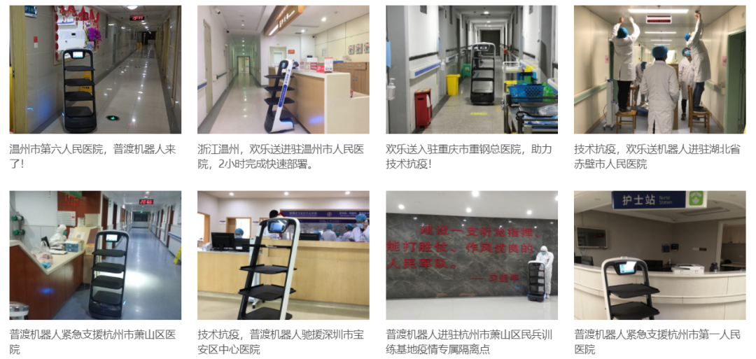 疫情期间,普渡科技共计投入抗疫支援人力超过200人,驰援了数百台机器人于湖北、广东、浙江、北京、上海等省市的数百家医院和隔离点;其中,应深圳市卫健委、南山区卫健局、南山区政数局、南山区科技创新局的指示,驰援了深圳市的雅园港口酒店、新桃园酒店、万科隆宾馆、青青世界酒店、汉庭酒店、维也纳酒店、富邦国际酒店、城市客栈酒店、深圳市第二人民医院、深圳市第三人民医院、国科大深圳医院、南方医科大学龙珠医院等,共计驰援深圳本市32台欢乐送机器人。此外还支援了重点疫区湖北省的武汉协和医院、武汉金银潭医院、湖北省妇幼保健院、武汉武大人民医院、普仁医院、荣军医院、黄冈中心医院(大别山医疗中心)、黄冈黄州同济医院、赤壁人民医院、赤壁蒲纺医院等。