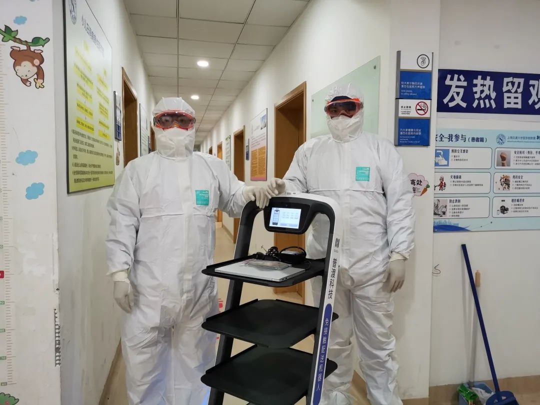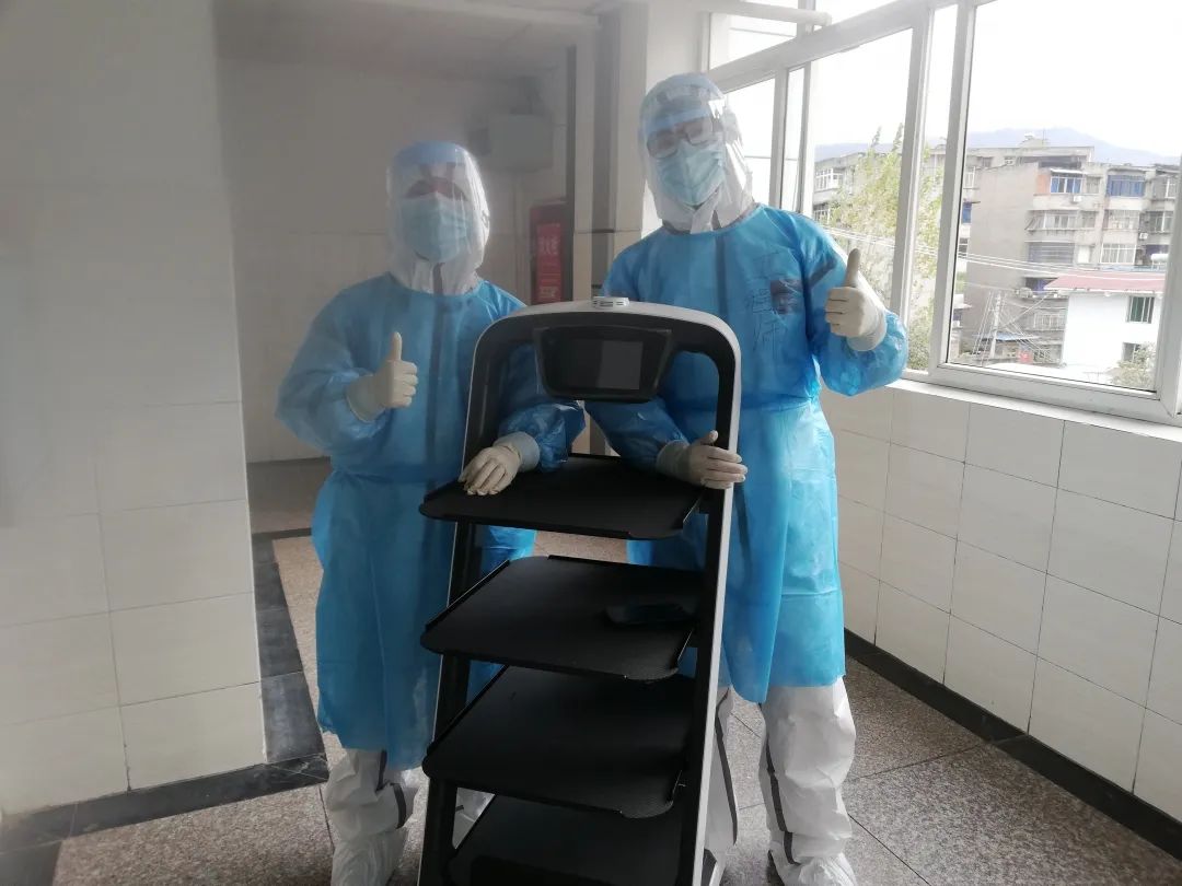 用智能配送机器人“欢乐送”代替人工配送餐食、药物、水源或患者提出的其他物品,护士们都可以在不接触病患的情况下,在护士站里就将所需物品放到“欢乐送”上,让“欢乐送”自动前往病房门口,患者听到门口“欢乐送”的语音后领取物品,半分钟后不用任何接触操作,机器人又会自动回到护士站,消毒后又可以继续配送了。