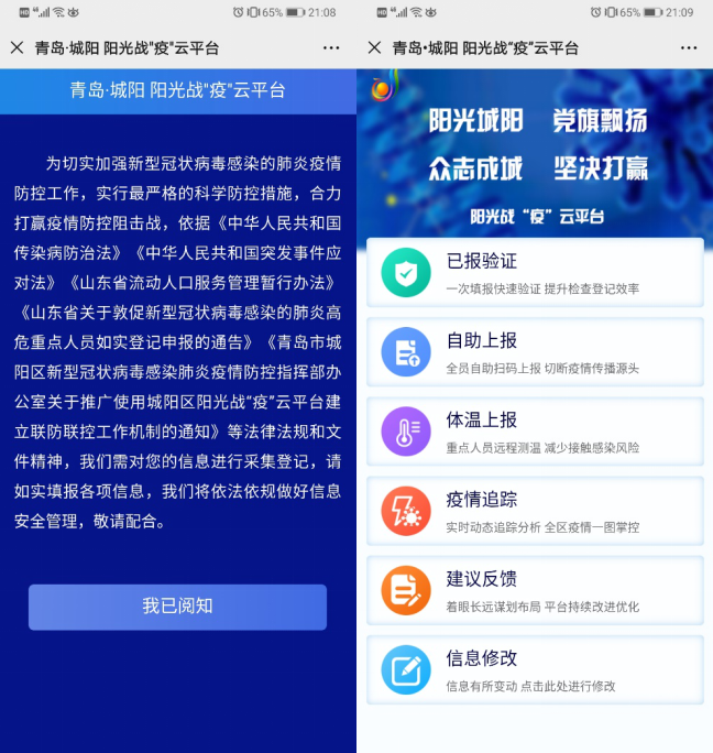 基于立得空间战“疫”时空云信息化解决方案,定制开发了青岛市城阳区阳光战“疫”云平台,并投入城阳区疫情防控一线作战,旨在以联防联控阳光工作机制,从源头上切断疫情的传播、从后台上保障疫情的追踪,支撑疫情“数战数决”,助力城阳区打赢疫情防控阻击战。