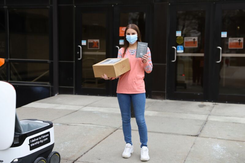 这台机器人的主人是送餐创业公司Starship。今天,Starship宣布,它已经完成了100万次送货。美国俄亥俄州Bowling Green的大学生Annika Keeton是Starship的第100万名顾客。