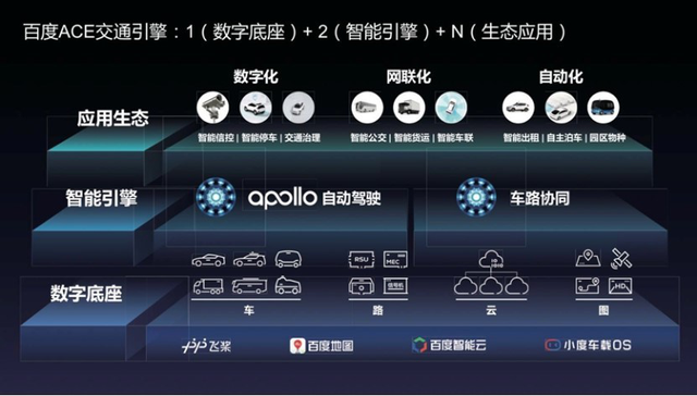 在智能交通领域,Apollo也在以“先行者”身份引领智能交通赛道新风向。2020年,11月23日,百度Apollo ACE智能交通入选2020世界互联网大会“世界互联网领先科技成果”。 “ACE交通引擎”集成了百度在人工智能、大数据、自动驾驶、车路协同等领域的多年积累,是行业内唯一“既面向未来,又兼容当下”的下一代智能交通解决方案。目前,ACE智能交通在北京、广州、长沙、重庆、保定等近二十个城市开展落地实践,助力当地交通管理迈入智能化、一体化的崭新阶段。