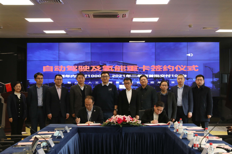 2月8日,人工智能头部企业深兰科技在上海总部大厦举行自动驾驶及氢能重卡项目签约仪式,线上线下30余位专家学者、行业领头人参与签约仪式。根据协议,深兰科技将在两年内实现1000台以上自动驾驶+氢能重卡的交付,首批100台将于2021年第二季度完成下线。