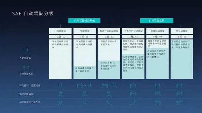 目前国内外都将自动驾驶技术分为了5个阶段,即L1~L5级别,目前国内仅仅只是开放了L2级别自动驾驶技术的路权。L2级别自动驾驶技术指的是在特定的场景下,系统会对车辆进行纵向和横向的操作,驾驶员必须要一直主导掌控驾驶。