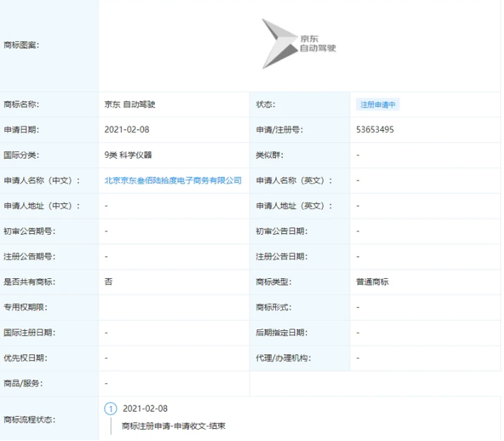 近日,京东关联公司北京京东叁佰陆拾度电子商务有限公司正式提交申请注册“京东 自动驾驶”商标。