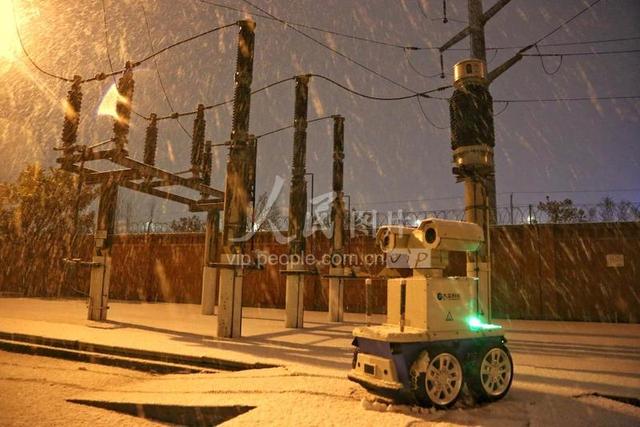 2021年2月25日,河南郑州,在中国铁路郑州局集团有限公司郑州供电段110KV圃田牵引变电所,一台智能机器人正在对变电设备进行巡检。