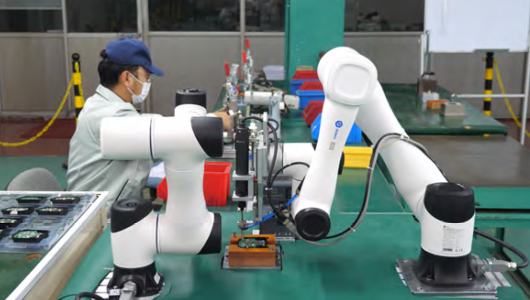 越疆科技“协作机器人螺丝锁付方案”在某日资汽车零部件制造工厂客户现场,执行天线自动化装配任务。