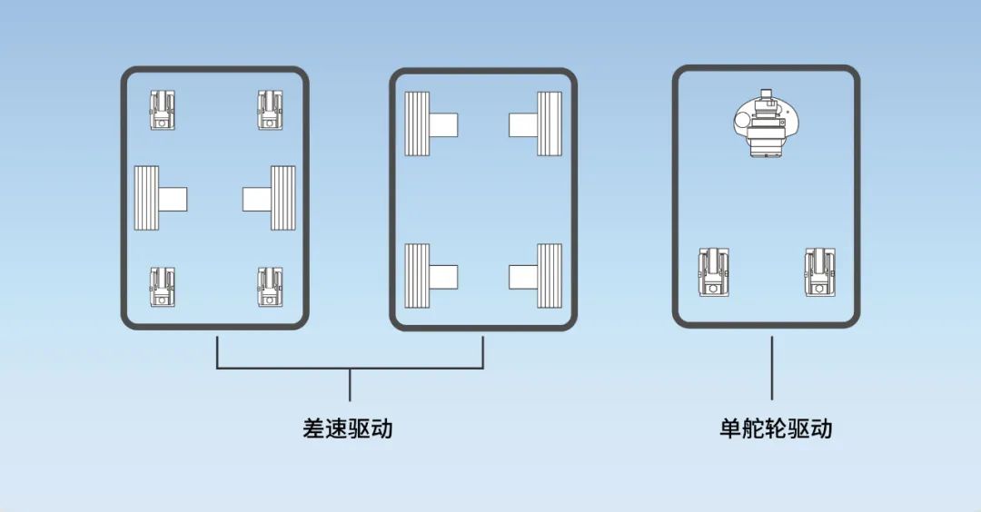 双差速模组运动模型中的双差速模组是一个转向和驱动模块,替换了传统机械复杂的舵轮模组(传统机械舵轮模组在底盘上能够转动,但转动范围会受到机械结构或电缆的限制)。
