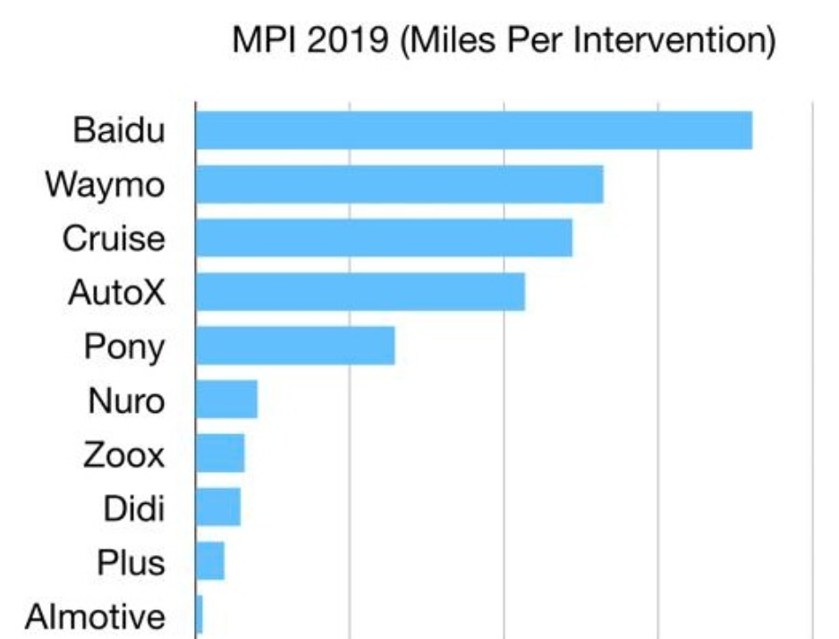 自动驾驶行业是一个相对不透明的行业,因为所有公司都将专有技术的细节保密起来,而且几乎没有成熟的权威机构能够评估这个新兴领域。脱离数据在过去一直被认为是测量自动驾驶公司的无人驾驶水平指标。