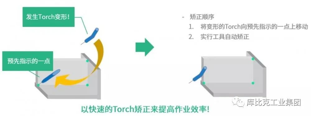 焊接Torch变形时,焊接点变更影响焊接质量;利用预先指示的一点的信息来矫正简单的变形或已变更的Torch。