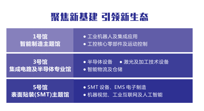 本届展会将顺应产业发展的趋势,特设半导体及集成电路专业馆,该专馆将聚焦新基建,展示主要以芯片设计及制造、Mini-LED、Micro-LED、第三代半导体产业、集成电路封测、材料及设备为一体的半导体产业链。致力于推动未来新型应用及和全球AI、物联网、汽车、手机、3C电子及半导体产业链的合作交流;标谱、新益昌、劲拓、博世、麦柯泰姆、意法等行业领军企业届时将携创新设备及一流产品亮相,将以创新策略迎接5G时代的半导体新材料和新设备制程工艺。