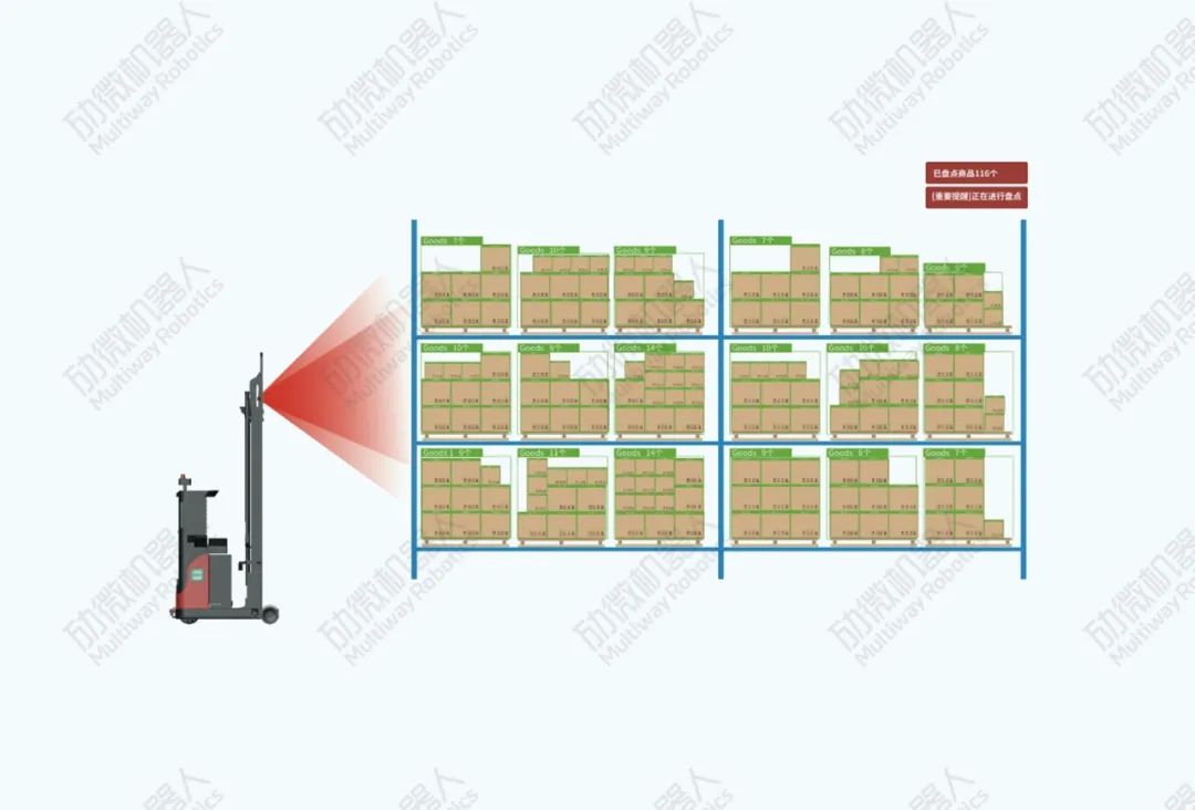 状态识别:对于库位货物偏差超出预设值时进行报警