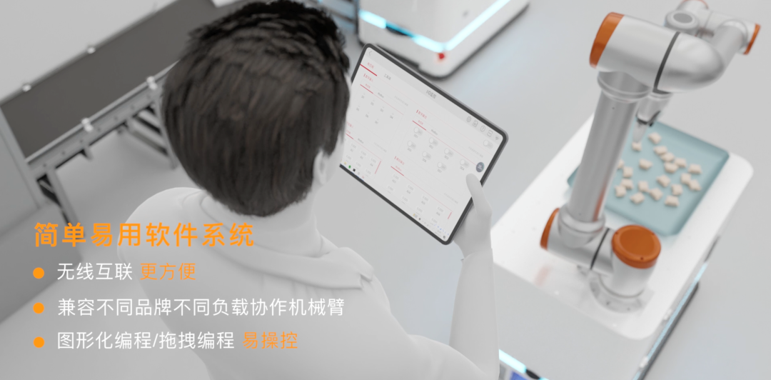 兼容便捷可兼容不同品牌不同负载的协作机械臂,适用不同应用场景;图形化编程/拖拽编程的操作方式,降低使用门槛,易学易用易上手。