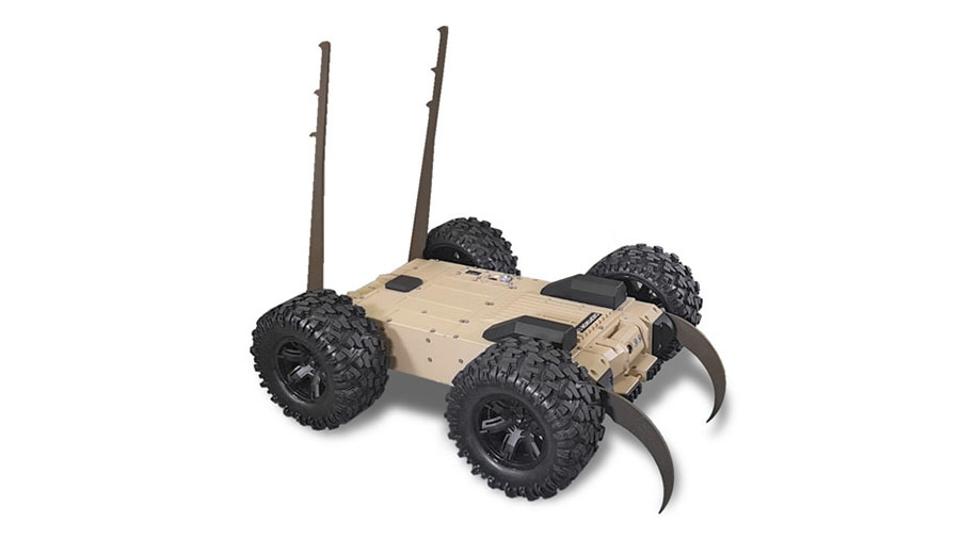 蝎子看起来就像特别温顺的一季《战斗机器人》中的东西,它是一款四轮的、无人驾驶的地面车辆,前部有一对类似爪子的附属物,后部有一对杆子,可以帮助它爬楼梯。