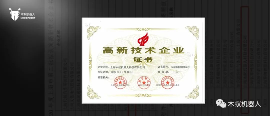 作为全国高科技企业的最高荣誉之一,高新技术企业认定是依据科技部、财务部、国家税务总局的有关规定,经严格审查、共识后确认的资质,是国家针对企业方面拥有的核心自主知识产权,综合企业的研发投入、技术创新、团队建设、成长能力等方面进行全方位权重考评,是目前国内对企业在科技综合实力方面最权威的评定,此次入选也体现了政府部门对于木蚁机器人专业科技实力及科技水平的充分认可。