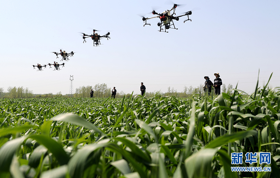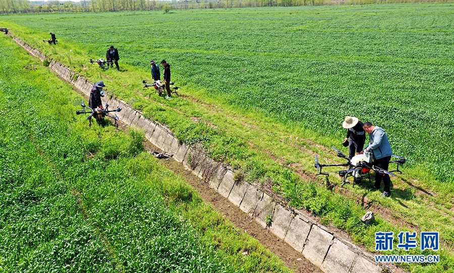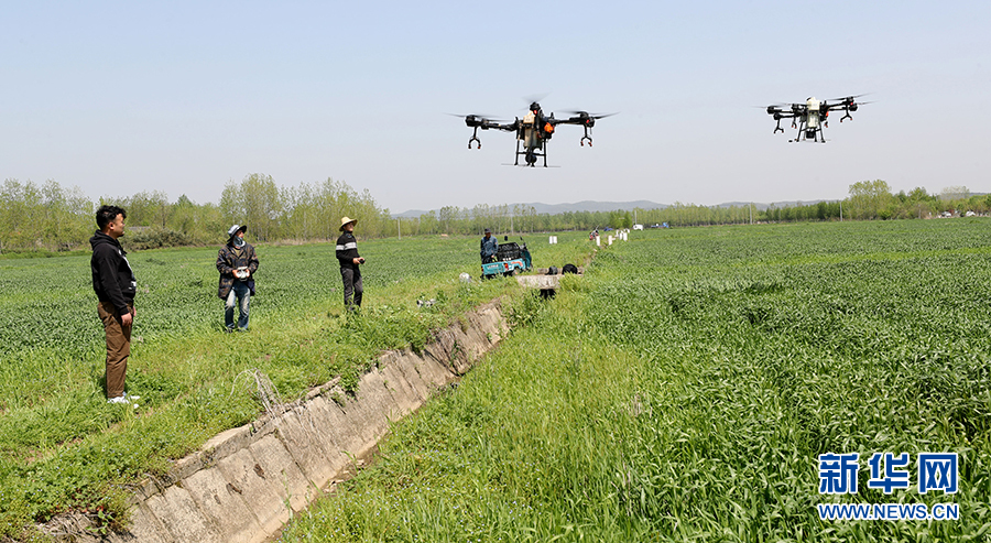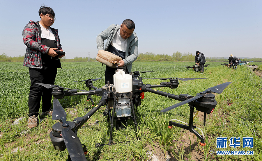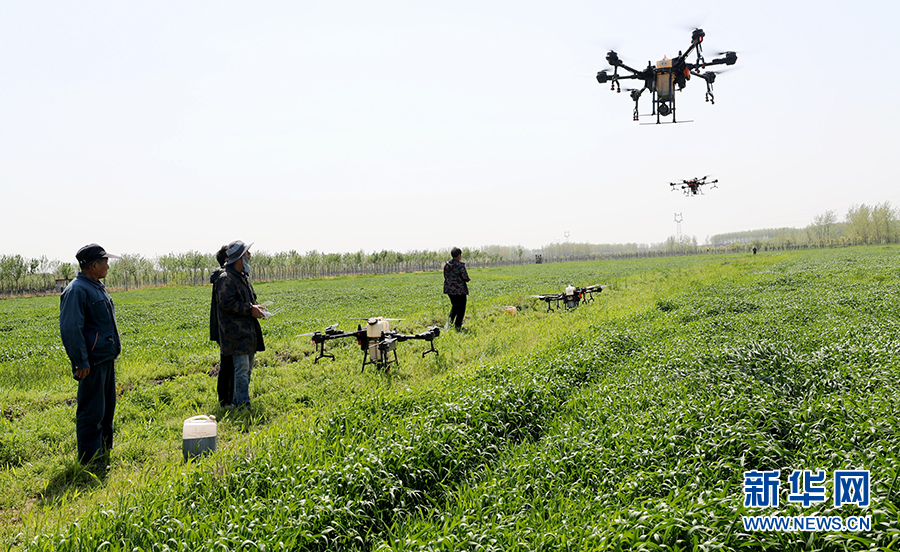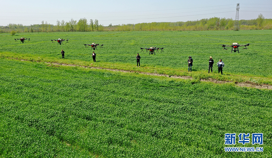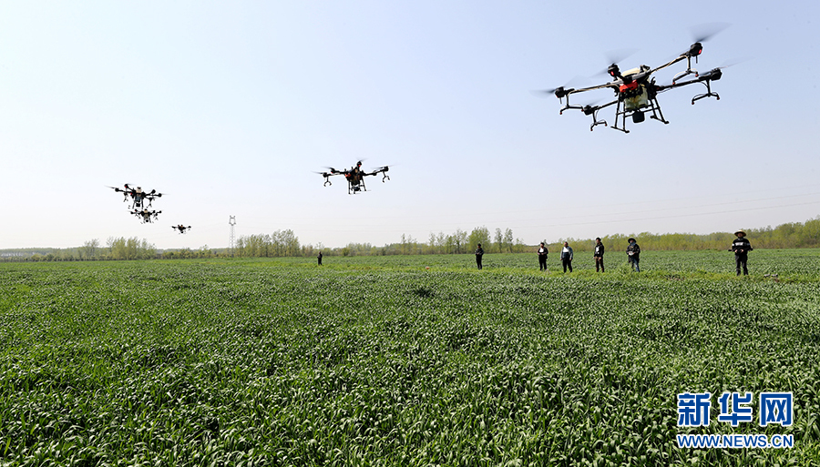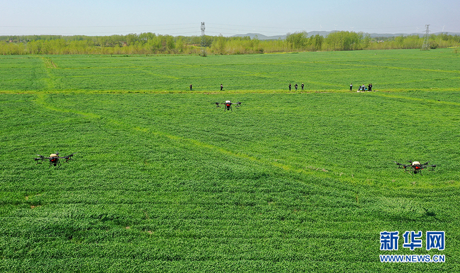 4月9日,在全椒县六镇镇草庵村,植保无人机进行飞防作业。