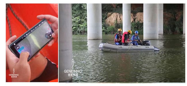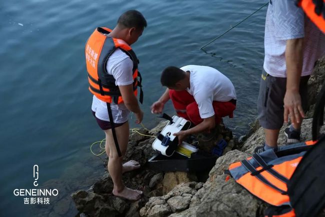 搜救过程中,搜救人员和吉影专业技术人员采用吉影水下智能机器人T1设备、借助皮划艇对水库进行不间断搜索,同步使用人力潜水全方位展开搜寻落水者。