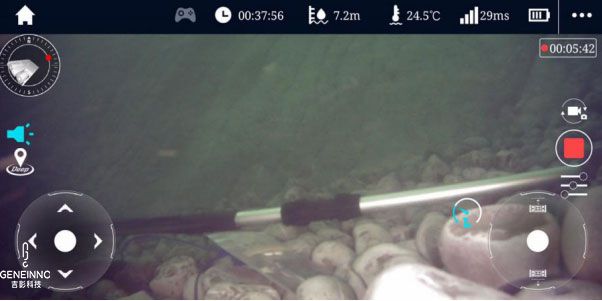 在救援人员精准操作下,吉影水下智能机器人T1通过双视角相机,及时同步水下拍摄到的画面情况实时传输给救援人员,十分钟不到扫描到落水者可疑区域方位,不断缩小搜寻范围。