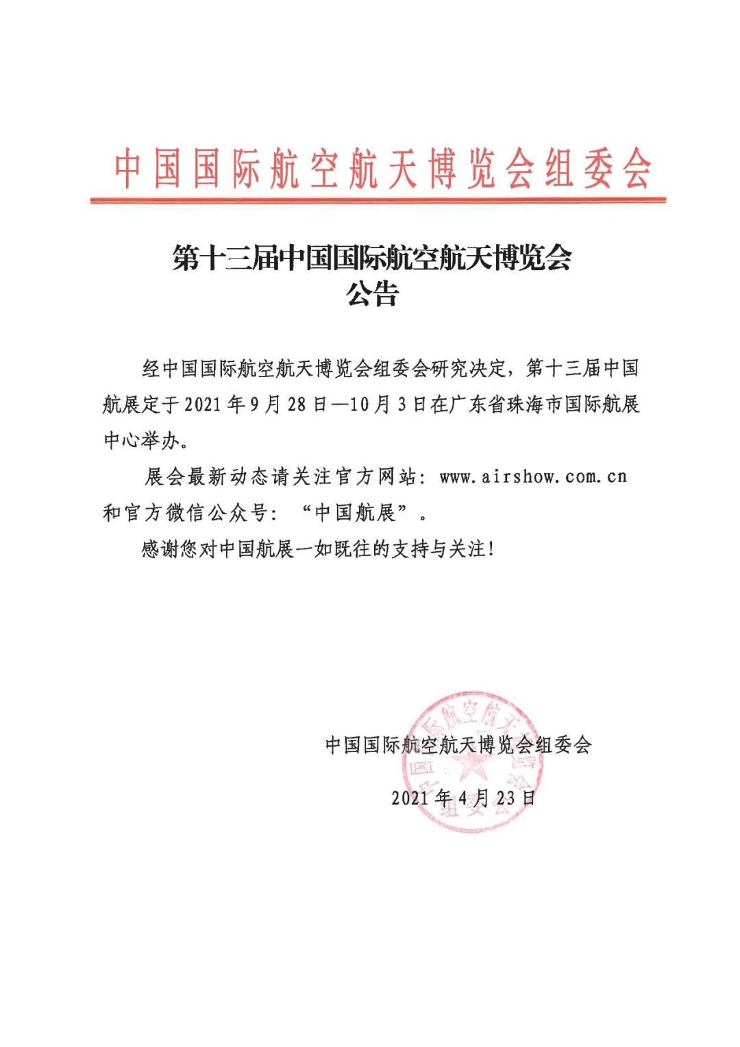 官宣!珠海航展重要通知...