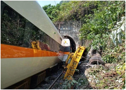 4月2日,台湾一列“太鲁阁号”408次列车,行经崇德、和平间,在花莲大清水隧道发生出轨事故,列车乘客约350人,多人无生命征象。据初步信息显示,事故原因是一辆在坡上施工的工程车,因不明原因滑落,与准备进隧道的“太鲁阁号”列车相撞导致的。