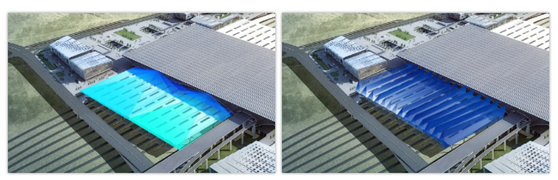 高铁站内钢架结构的风雨棚长期使用后存在抵御风力能力降低的风险,特别是个别车站的风雨棚屋面板被大风吹落,造成接触网停电事故和中断行车。方案通过激光雷达对风雨棚顶部进行实时建模和全面监控,实时测算出风雨棚各部位的形变参数,当形变参数超过设置的阈值即发出报警信号。