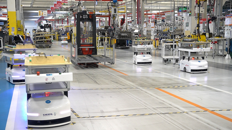 为了实现目标,Sherpa移动机器人提议在由其车队管理系统软件管理的六个机器人车队的支持下,对装配线进行完全重组。与AGV不同,这些AMR不依赖专用路径。它们可以编程,以适应环境的约束和不断的进化。