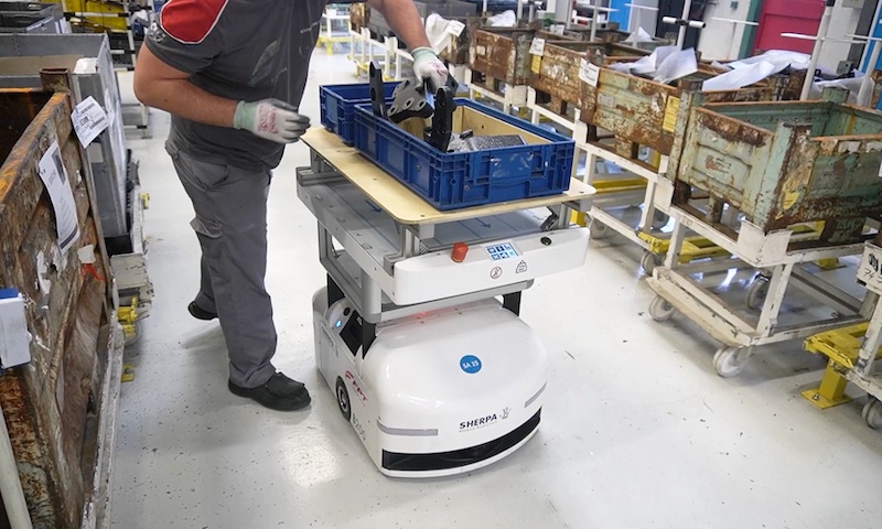 Sherpa 移动机器人公司技术总监Damien Winling说:“机器人在正确的时间带着正确的零件到达,这些机器人每天使用20小时,每天总共执行450个机器人任务。使用这种车队可以减轻装配任务的艰巨性,并降低与运输货物相关的风险。流程的管理更加顺畅,生产率就提高了。”