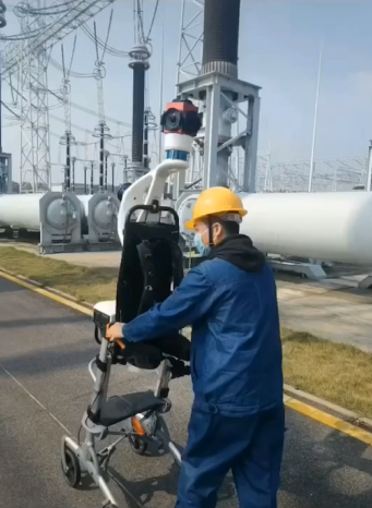 整个仿真部署系统,采用更加专业的便携式制图设备“背包侠”,“背包侠”主要负责进行高精度变电站点云与全景数据的采集。