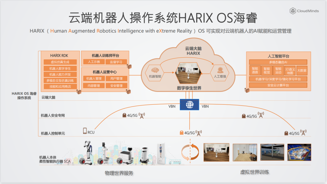 达闼作为全球首家云端机器人运营商,自2015年成立以来,专注于云端机器人技术的研究与开发,打造了电信运营商级别的大型融合智能机器学习和运营平台、安全高速网络、商业服务机器人和其他智能设备。