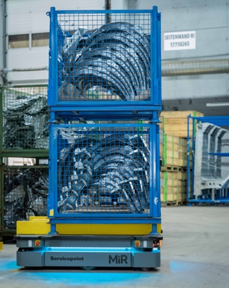 以福特西班牙工厂的冲压车间为例,为了保证进行冲压工作的机器人工作站及时获得所需的工业及焊接材料,福特部署了三台MiR AMR为产线进行物料运输工作。经测试证明,每台机器人平均每天能够为福特释放40个工时,让工人们投入到其他更为复杂的工作之中。