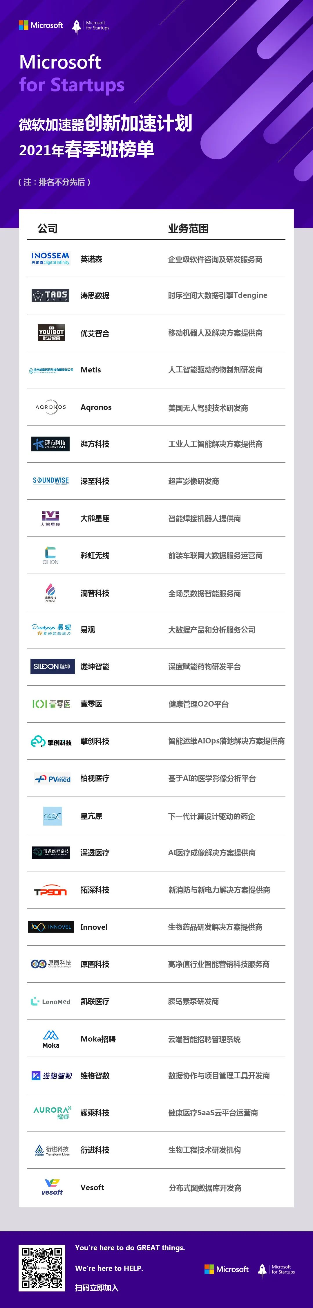 向来以严苛“入学”要求著称的微软加速器,近日公布了2021年创业加速计划春季班的榜单,此次数百家参选的科技初创企业中,仅26家企业入选。