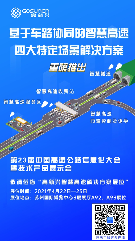 此次活动中,高新兴将携智慧高速创新方案亮相中国高速公路信息化大会,全面展示高新兴基于车路协同的智慧高速整体解决方案,通过车路协同、融合感知、人工智能、AR增强现实等关键技术能力,致力于构建安全、高效、环保的智慧高速公路以及提供便利和舒适的智慧出行服务。