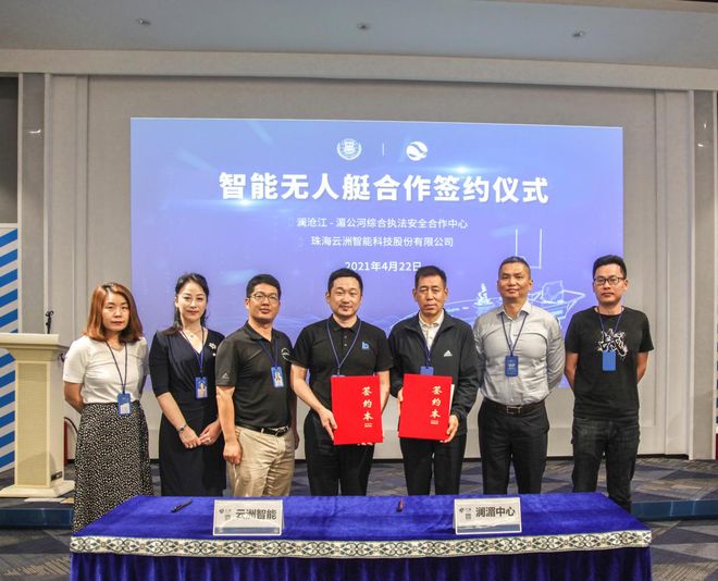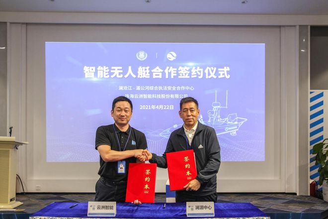4月22日上午,澜沧江—湄公河综合执法安全合作中心(简称“澜湄执法中心”)牵手珠海云洲智能科技股份有限公司(简称“云洲智能”)在珠海举行智能无人艇合作签约仪式。双方将联合推动澜湄流域智慧安防应用,以无人船艇技术保障国际航运安全。澜湄执法中心秘书长郑百岗,云洲智能总经理成亮、常务副总经理余天亮等出席签约仪式。