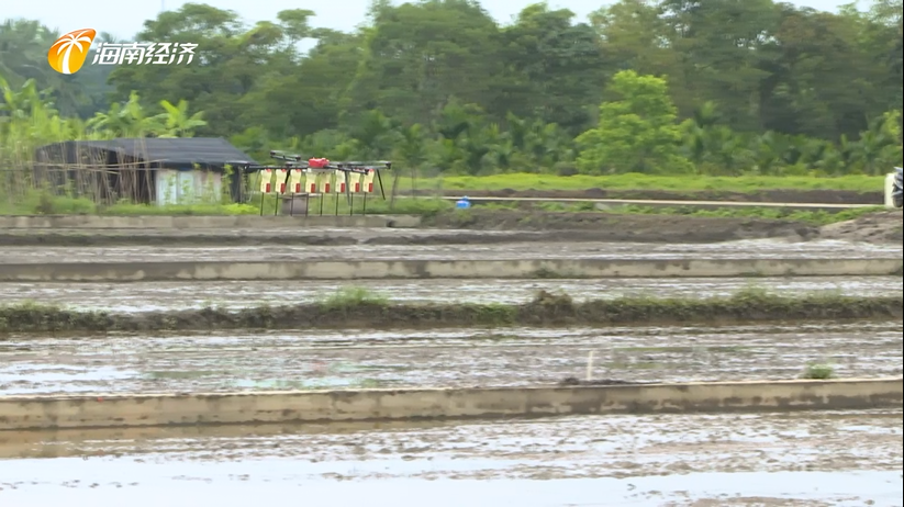 天谷农业科技(海南)公司 负责人 庄健:我们现在看到的飞机,就是用更好的方法在种植的过程中,降低成本、提高效率,这样来做,这是叫精量直播。我们根据品种的要求是要30乘20的规格,就是行距30,株距20,那我们就可以在飞机上调整。播种出来以后跟插秧机插出来是一样的,一行行的很清楚,这是用这种方式来做,缩短了时间,提高了效率,适合大面积的推广。
