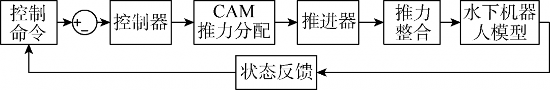 在MATLAB/Simulink环境下,选用1.2节中水下机器人数学模型,结合CAM矩阵控制方法,进行仿真试验,验证所提容错控制方法的可行性和有效性。仿真结构图如图7所示。