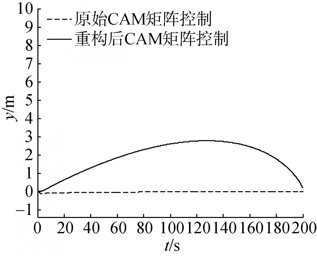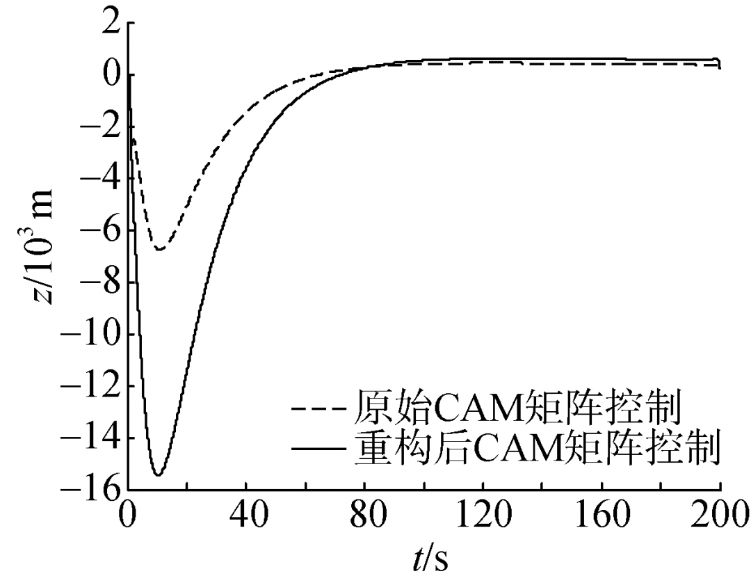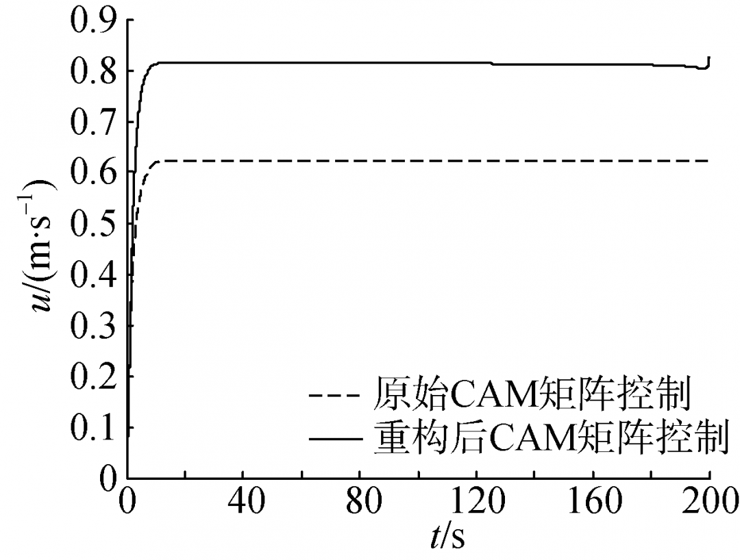 由于CAM矩阵可以提供六自由度的控制指令,当某一推进器出现故障后, CAM矩阵将其视作一种干扰,进行稳定控制。但这种未经过调整的原始CAM矩阵没有考虑各个推进器推力的合力大小,而经过上节所述重构后的CAM矩阵能够使推进器产生更大的推力合力,使得水下机器人行驶效率更高。