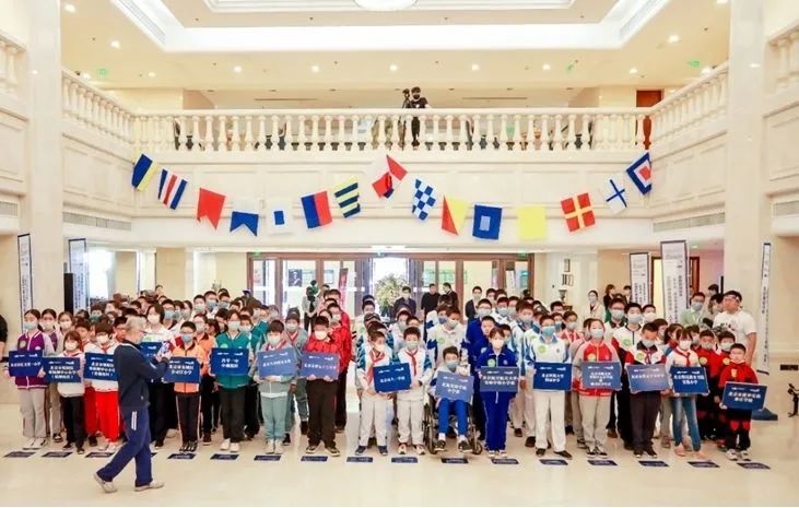 ↑哈尔滨工程大学李海波教授向参赛队中小学代表授“中国青少年深海工程”战旗