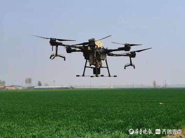 在辛寨镇刘方珠村党支部领创办合作社经营的小麦地里,农业植保无人机依次升空,悬浮在碧绿的麦田上,药物均匀地喷洒到小麦叶面上,高效的飞防作业赢得在场合作社社员拍手称赞。据悉,刘方珠村恩泉党支部领创办合作社经营的430余亩小麦将全部使用无人机进行防控作业。